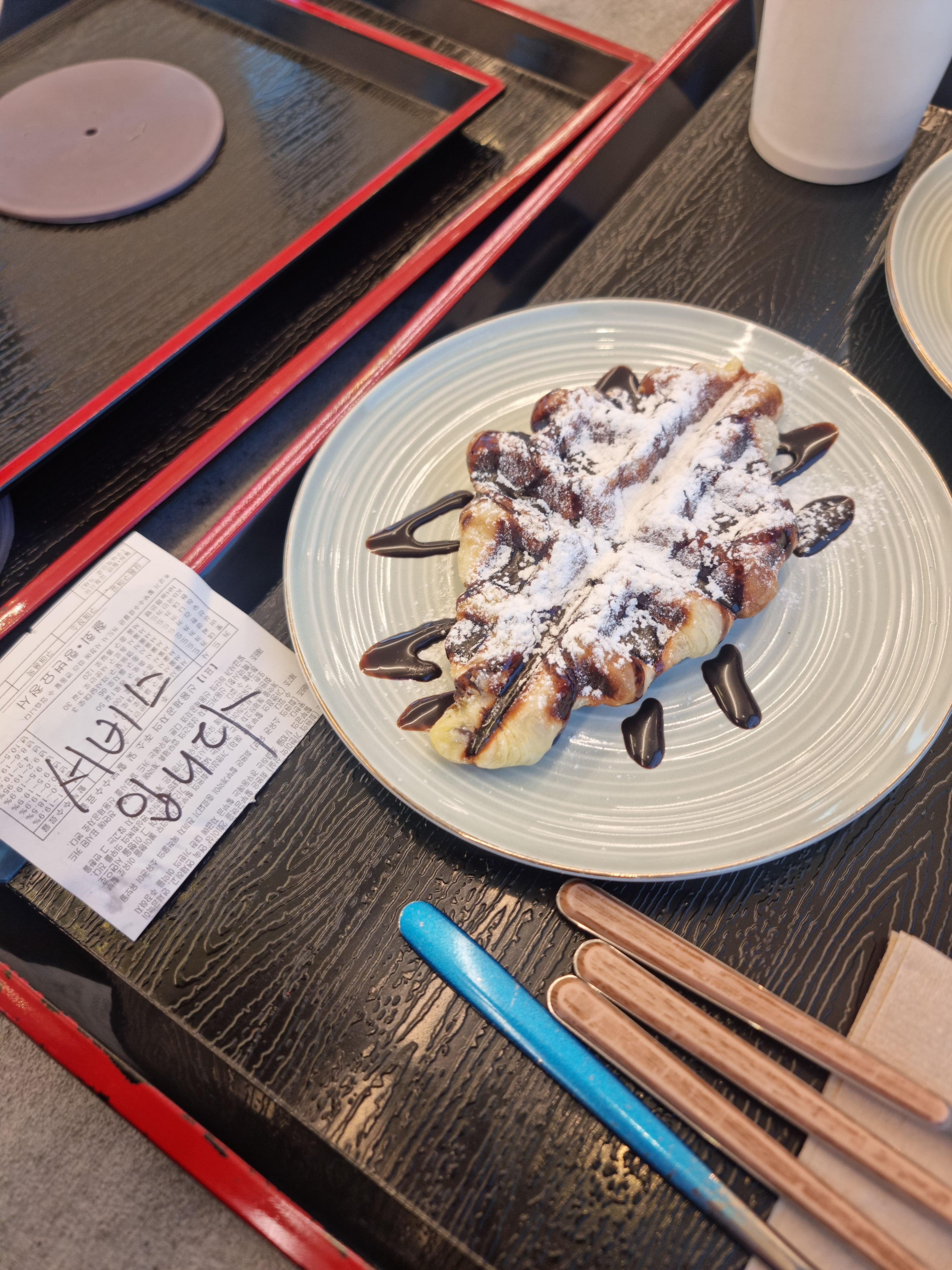 칼로 품위있게 먹었습니다. (쓰느라 고생했다…ㅋㅋㅋ)