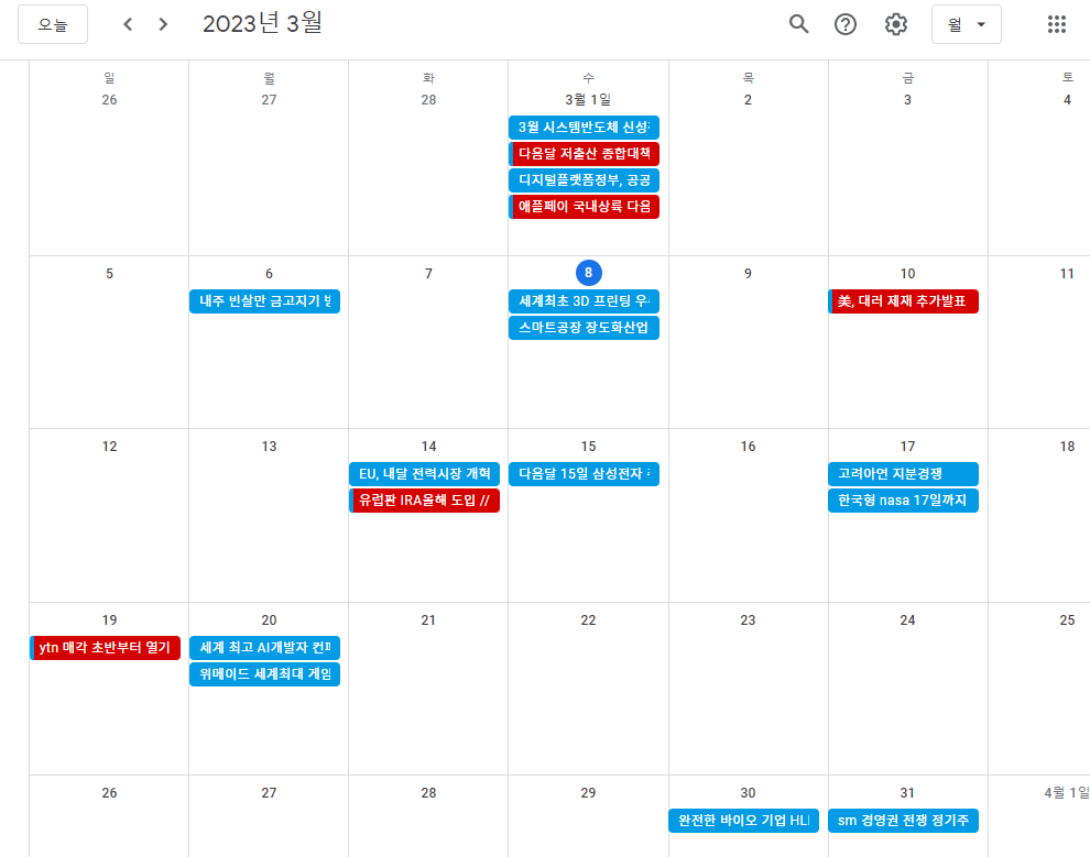 저는 Paxnet에서 제공하는 인벤토리 계획을 제가 필요하고 보기에 편리한 정보만으로 Google 캘린더에 정리하기 시작했습니다.